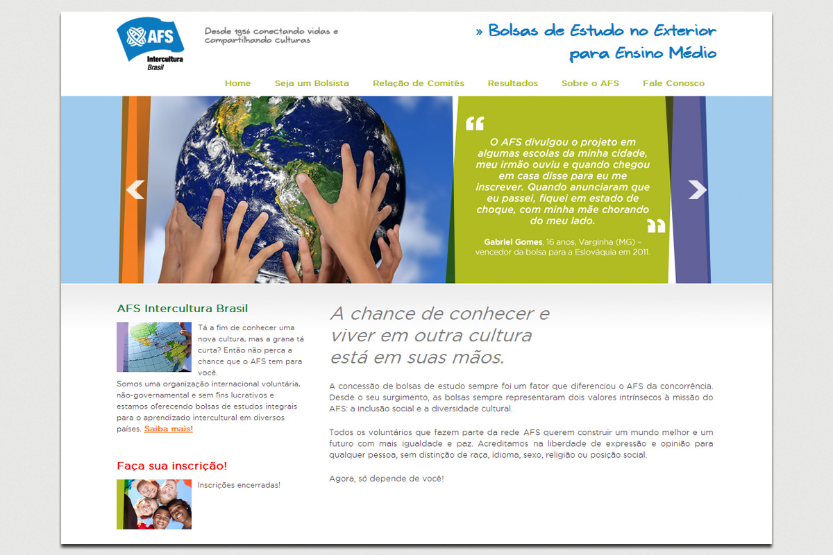 Hot site do programa AFS Bolsas de Estudo no Exterior para Ensino Médio.