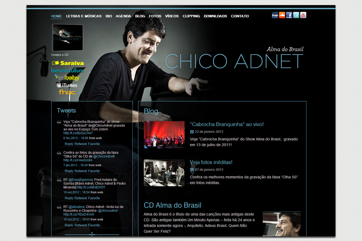 Site de lançamento do CD "Alma do Brasil" do músico Chico Adnet.